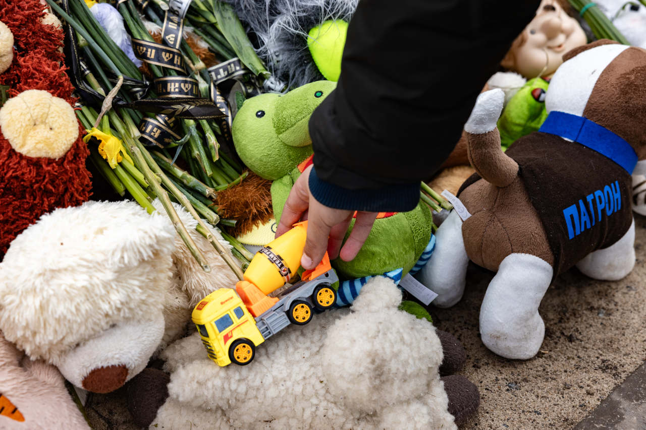 An 8-year-old named Kyrylo stood silently as he gazed at the memorials. He then took out a small toy car from his insulated coat pocket. “I’m not a child anymore; I have no use for toys like these,” he remarked, placing it alongside a pile of plush toys. “Is it true that we might never get to play here again?”